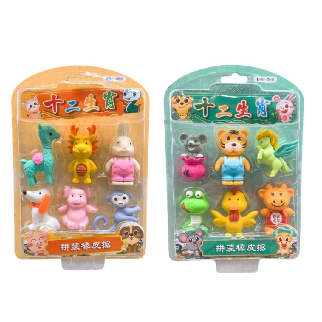 BORRACHA ESCOLAR ANIMAIS KIT C/6