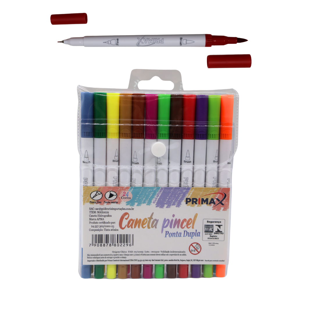 CANETA PINCEL 24 CORES PONTA DUPLA